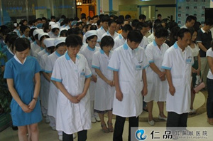 仁品耳鼻喉医院现场为汶川地震爱心捐款后的默哀仪式