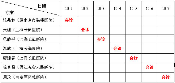 国庆期间北京、上海、江苏特邀医生会诊时间表