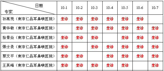 国庆期间南京仁品耳鼻喉医院医生坐诊时间表